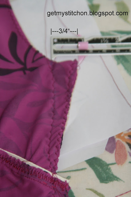 Once the suit was snug, I serged the side seams. There is actually very little serging that can be done on this suit. I only used mine on the crotch and side seams, and on attaching the elastic to the bottom of the back band. All other elastic was sewn on with a zig-zag stitch then turned to the inside and top-sitched with a twin stretch needle. So there's no obligation to have a serger!